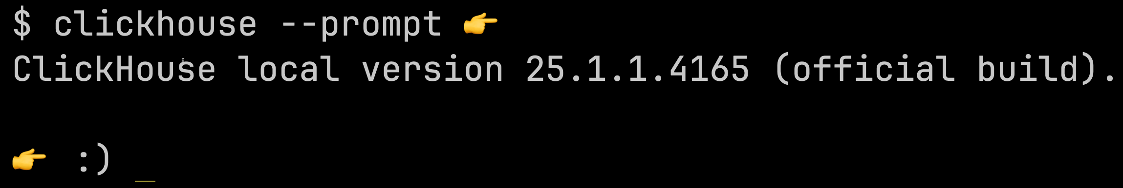 If you don't like how clickhouse client and clickhouse-local display the prompt in your terminal window, it is possible to change it to add a prefix. This article explains how to change the prompt to whatever you want.