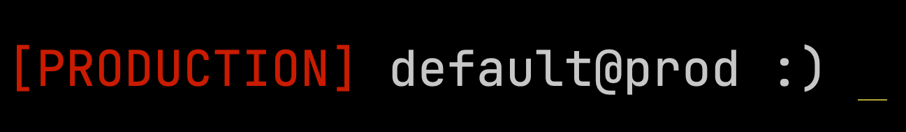 prompt: "\e[35m[PRODUCTION]\e[0m {user}@{host}"